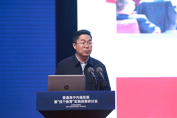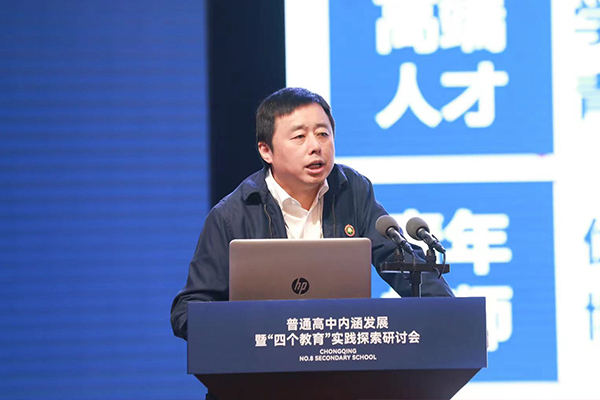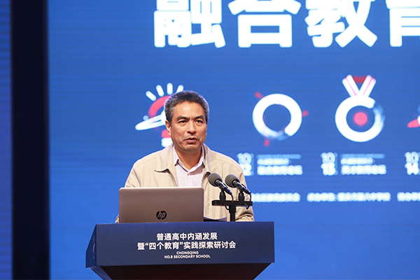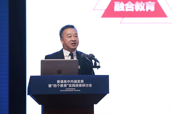 渝北区教师进修学院书记、院长陈治国主持重庆八中“融合教育”实践探索研讨会。