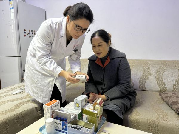 药师走进居民家中科普用药知识。