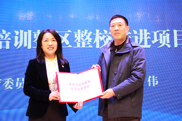 随后,重庆市教委师范教育处处长黄伟为天台岗小学教育集团市教委中小学培训整区整校推进项目颁发了项目证书。