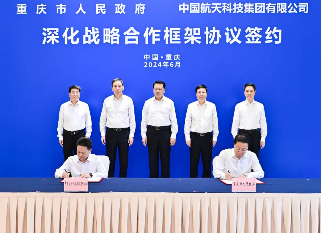 6月26日上午,重庆市人民政府与中国航天科技集团有限公司签署深化战略合作框架协议。记者 苏思 摄/视觉重庆