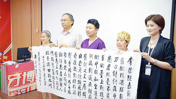 在分享环节中,无痛舒适化种植牙受益人吴老师分享了他的种牙经历,同时为表达感谢,患者为医院进行了题诗。