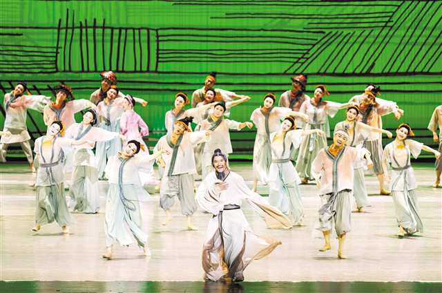 舞剧《杜甫》中的“春夜喜雨”舞段。(重庆歌舞团供图)