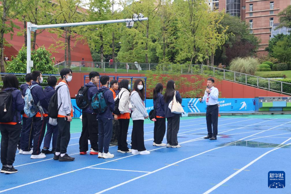 10月14日,香港金文泰中学师生在重庆市育才中学校参观。新华社记者 雷明宇 摄