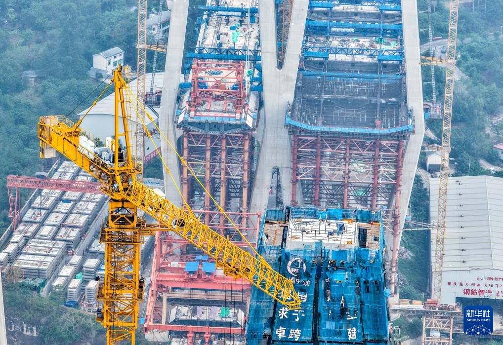 这是10月17日拍摄的渝万高铁石沱长江大桥建设现场(无人机照片)。