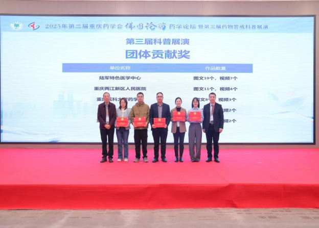 近日,由重庆药学会、《中国药业》杂志联合主办的“第三届药物警戒科普大赛”举办。重庆两江新区人民医院荣获图文类、视频类及团体贡献奖等多个奖项。