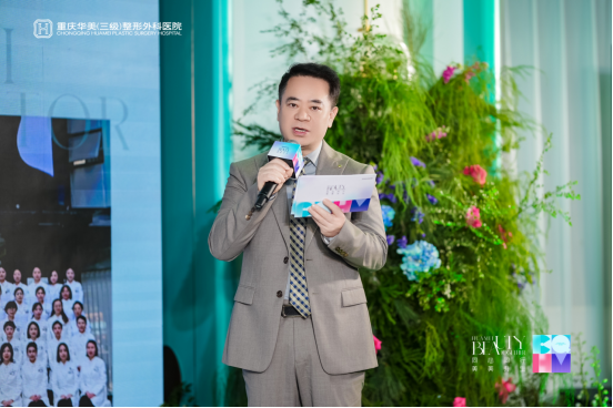 重庆华美整形技术院长李富强从医疗建设成果、医疗服务、美学体系三方面分享了医院过去一年的成长。他提到,重庆华美作为国家医美质控中心调研哨点医院,其规范化管理体系建设成果获专家组评价;同时获得“渝中区民营企业50强”第六名、“行业创新先锋单位”称号。
