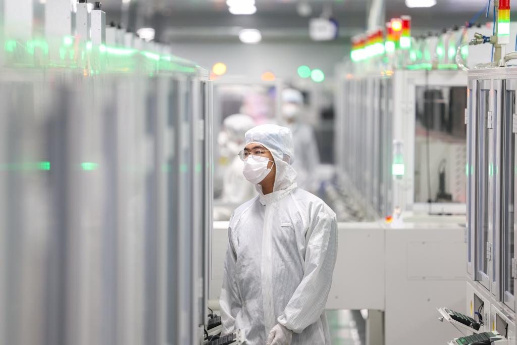 12月2日,在重庆新视通智能科技有限公司COB生产车间,工人在查看自动固晶机工作情况。新华社记者 黄伟 摄