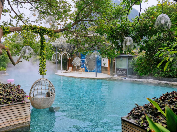 东温泉镇作为重庆市级风景名胜区及国家4A级旅游景区,温泉资源储量丰富,水温常年稳定在38℃至53℃之间,富含氡、氟、锂等微量元素,被誉为“天然桑拿”的亚洲独特喀斯特热洞更是其标志性景观。此次活动巧妙利用这一优势,将温泉体验与乡村赶集传统结合,推出“消费满额抽温泉券”“住宿+温泉优惠套餐”等联动福利。游客在采购年货之余,可凭消费凭证参与抽奖,获得温泉酒店体验券,实现从热闹市集到静谧汤池的一站式暖冬之旅。