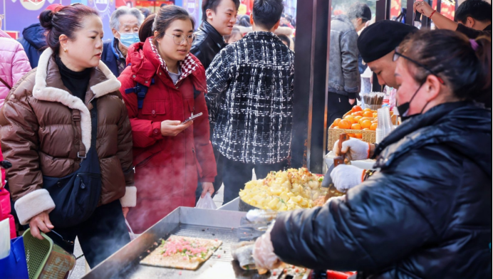 活动内容围绕乡土年味与民俗文化展开。市集板块汇聚东温泉本土直供的土鸡、土鸭、老腊肉、手工红苕粉等农产品,并设立区县爆品专区,集中展示秀山、丰都、荣昌等地的特色风物,还原“从田间到餐桌”的直供模式。民俗体验方面,游客可参与装香肠、打糍粑等传统美食制作,欣赏糖画、藤编等非遗技艺展示,每晚还将举办篝火狂欢夜与民俗歌舞表演,营造浓厚节庆氛围。此外,团圆宴席以“泡温泉+吃刨猪汤”为主题,推出长桌宴与互动游戏,让游客在热气腾腾的乡土美食中重温年味记忆。