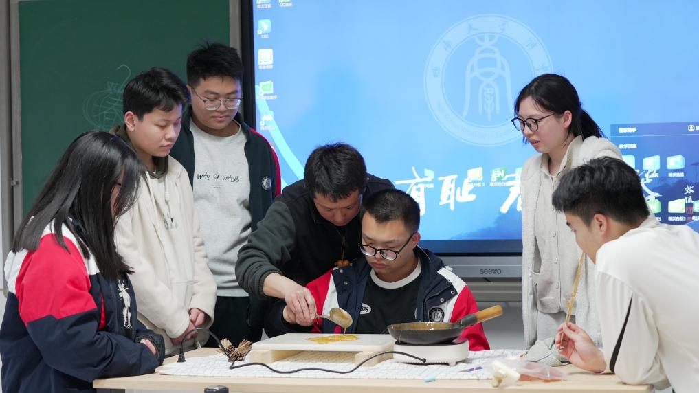 跟着老师学画糖画、绣蜀绣