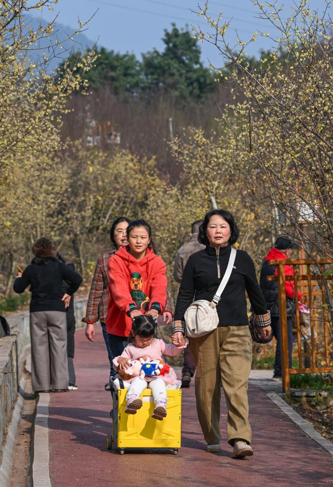据悉,当地依托蜡梅产业资源优势,精心打造多条冬季乡村旅游精品线路,有效带动了当地餐饮、住宿、零售等产业发展,促进了村民“家门口就业”。成功推动“赏花经济”向“体验经济”升级。