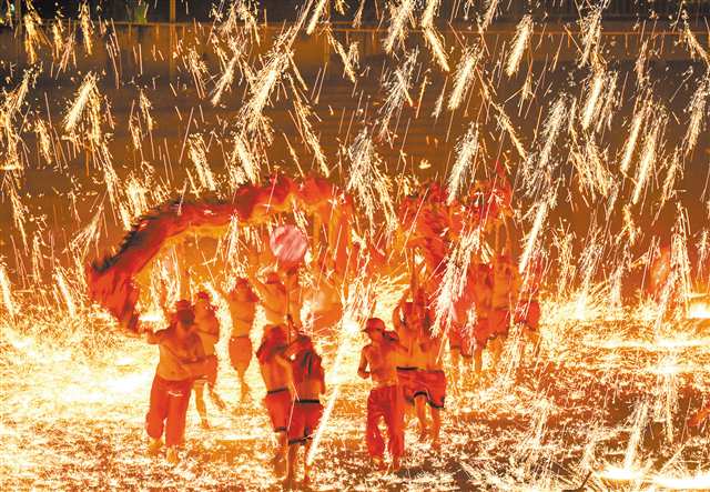 1月24日晚,铜梁第十二届龙灯艺术节暨奇彩千灯会在奇彩梦园景区启幕,现场表演了千年非遗铁花秀。