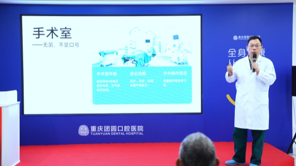 服务溯源环节,团圆口腔医院院长郭晓强带来《品质护牙315,微笑护航365》主题讲座,揭秘种植牙手术从患者进院咨询到术后回访的全流程隐形保障。讲座首次公开消毒供应室、麻醉师办公室、手术室等区域,展示医院严格执行国家集采政策的价格公示体系,以及术前知情同意书逐条讲解、术后七天内专人回访等服务细节。
