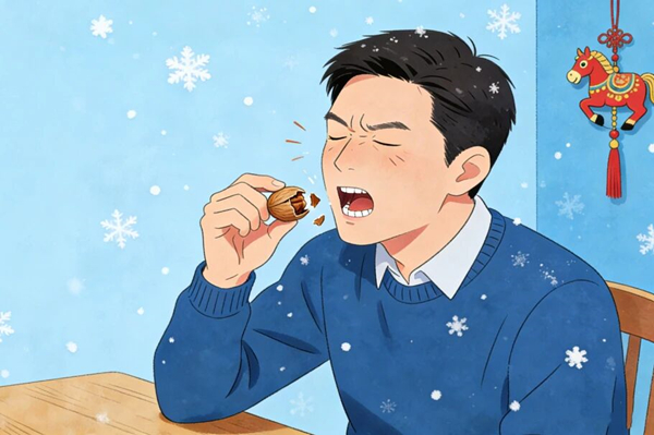 春节期间,王先生因为嫌剥坚果麻烦,直接用后牙咬开一颗山核桃,没想到牙齿刚一用力,一阵触电般的刺痛瞬间传来。他照了照镜子,发现牙齿看起来完好无损,便没放在心上。然而,春节期间走亲访友、聚会不断,他硬扛着没去管它,直到疼痛难忍来到医院,才发现是“牙隐裂”惹的祸。此时,裂纹早已深及牙根,牙齿“无力回天”,最终只能拔除。