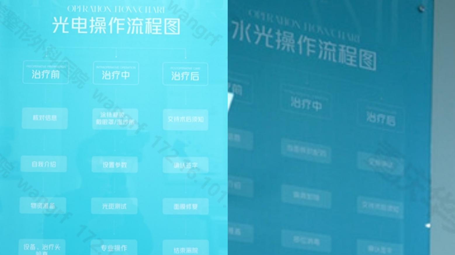 治疗sop公开,标准透明:重庆华美每间治疗室墙上均有治疗sop,术前—术中—术后严格核对,执行不打折扣,求美者亲自根据标准流程监督,确保治疗全程有据可依,公开透明。